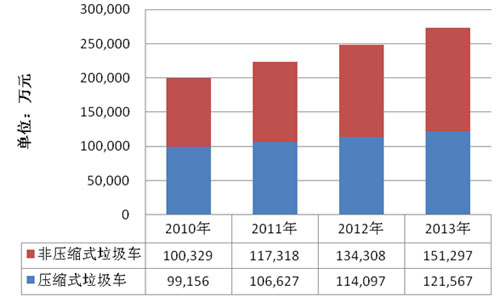 圖5 2010-2013年垃圾收集轉(zhuǎn)運(yùn)車市場(chǎng)預(yù)測(cè)銷售額