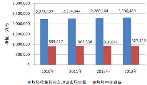 3、2010-2013年垃圾收集轉(zhuǎn)運(yùn)車及中轉(zhuǎn)設(shè)備理論市場(chǎng)容量