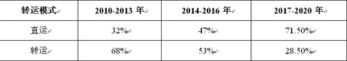 依據(jù)我國(guó)經(jīng)濟(jì)的發(fā)展程度及人均垃圾的產(chǎn)生量等因素,可將轉(zhuǎn)運(yùn)方式分為三個(gè)階段,見圖表3。第一階段為2010-2013年,第二階段為2014-2016年后,第三階段為2017-2020年后。