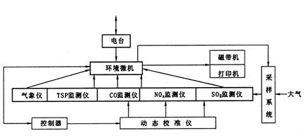 大氣污染連續(xù)自動(dòng)監(jiān)測系統(tǒng)由一個(gè)中心站,若干個(gè)子站組成。環(huán)境自動(dòng)監(jiān)測系統(tǒng)24h連續(xù)自動(dòng)地在線工作,工作內(nèi)容為獲取各種監(jiān)測數(shù)據(jù)、數(shù)據(jù)傳輸、數(shù)據(jù)處理。