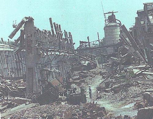 ![]() 唐山大地震后的殘垣 |