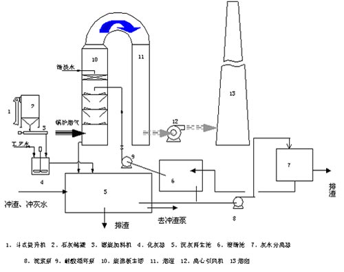 在石灰漿液(石灰達(dá)到過飽和狀況)中,NaHSO3很快跟Ca(OH)2反應(yīng)從而釋放出[Na+],[SO32-]跟[Ca2+]反應(yīng),反應(yīng)生成的CaSO3以半水化合物形式慢慢沉淀下來而使[Na+]得到再生?梢奛a2CO3只是作為一種啟動(dòng)堿,起動(dòng)后實(shí)際消耗的是石灰,理論上不消耗純堿(只是清渣時(shí)會(huì)帶出一些,因而有少量損耗)。