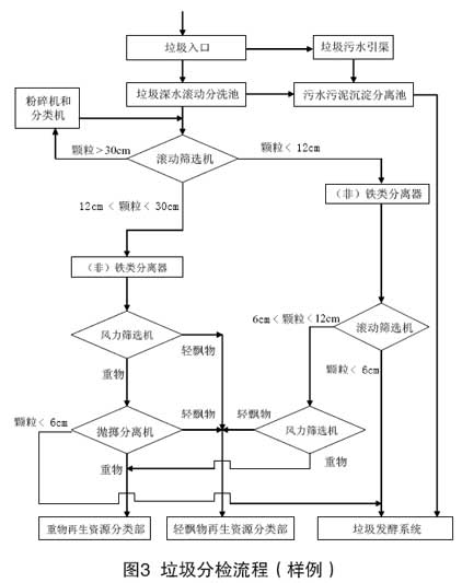 圖3所示的垃圾分檢流程僅作為一個(gè)樣例。根據(jù)垃圾機(jī)械分檢設(shè)備的發(fā)展和垃圾分檢深度的需要,可以添加相應(yīng)的分檢設(shè)備。