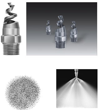 采用美國著名噴霧公司螺旋噴嘴,螺旋噴嘴是眾多噴嘴中最具特色的一種。液體通過與連續(xù)變小的螺旋線體相切和碰撞后,變成小液滴噴出,并且噴嘴腔體內(nèi)從進(jìn)口至出口的暢通的通道設(shè)計(jì)最大程度的減少了阻塞現(xiàn)象的發(fā)生。