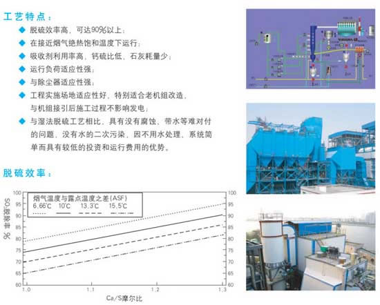 循環(huán)懸浮式半干法主要是根據(jù)循環(huán)流化床理論和噴霧原理,采用懸浮方式,使吸收劑在吸收塔內(nèi)懸浮、反復(fù)循環(huán),與煙氣中的SO2充分接觸、反應(yīng)來實(shí)現(xiàn)脫硫的一種方法。