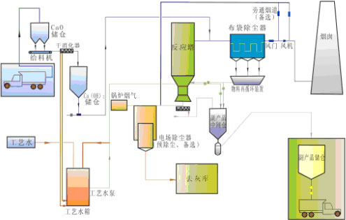 (4)通過(guò)向反應(yīng)器內(nèi)噴水,使煙氣溫度降至接近水蒸汽分壓下的飽和溫度,提高脫硫效率。