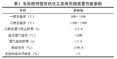 3 免助燃劑型有機(jī)化工廢渣焚燒裝置的性能參數(shù)