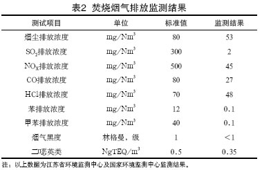 該焚燒裝置在正常運(yùn)行過程中,經(jīng)環(huán)境監(jiān)測部門多次監(jiān)測,各項(xiàng)排放指標(biāo)完全符合《危險廢物焚燒污染控制標(biāo)準(zhǔn)》(GB18484-2001)及《大氣污染物綜合排放標(biāo)準(zhǔn)》(GB16297-1996)(詳見表2)。