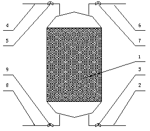 吸附床回收揮發(fā)性物質(zhì)的新方法廣泛用于石油、化工、橡膠、油漆、涂裝、印刷等行業(yè),其原理是在現(xiàn)有技術(shù)上解析最初持續(xù)通入大流量蒸汽,使如下圖所示吸附床1下部溫度達(dá)到100℃以上;在解析的最后,蒸汽閥7和解析閥9幾乎是同時關(guān)閉的,進(jìn)氣閥3和尾氣閥5也幾乎是同時打開的。