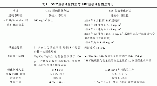 2 OMC脫硫催化劑與“888”脫硫催化劑使用效果比較