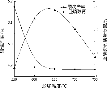 圖2  煅燒溫度對磷烷收率及亞磷酸鈣的影響