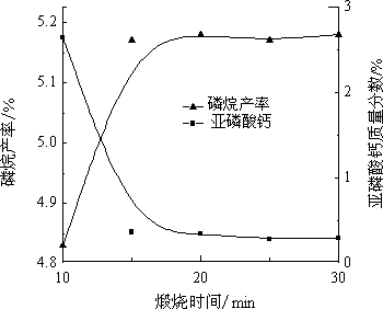 圖3  煅燒時間對磷烷產(chǎn)率及亞磷酸鈣的影響