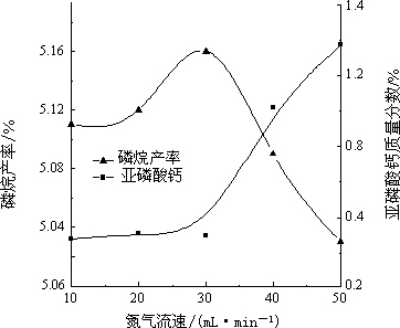 圖 4  氮氣流速對磷烷收率及亞磷酸鈣的影響