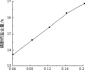 在廢渣原料中添加五氧化二磷主要有兩個作用,第一是吸收廢渣中亞磷酸鈣分解產(chǎn)生的水,減少磷烷產(chǎn)品中水蒸氣含量,降低后期對磷烷低溫冷凍分離時水蒸氣的影響;第二是增加固體磷酸鈣鹽產(chǎn)品中的磷含量,因為磷烷帶走了廢渣中亞磷酸鈣含有的近25%(質(zhì)量分?jǐn)?shù))的磷元素,使分解后的廢渣含磷量在13%左右,含量磷太低,不能夠做為動物飼料添加劑。因此,五氧化二磷的最佳添加量主要通過磷酸鈣鹽產(chǎn)品中的磷含量決定。磷酸鈣鹽含磷量與五氧化二磷添加量關(guān)系見圖5。