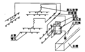 噴淋系統(tǒng)裝置組成:由水系統(tǒng)和控制系統(tǒng)組成。水系統(tǒng)由水源、水管路、閥門、過濾器和除塵噴頭組成;控制系統(tǒng)由電磁閥、傳感器、控制器等構(gòu)成。
