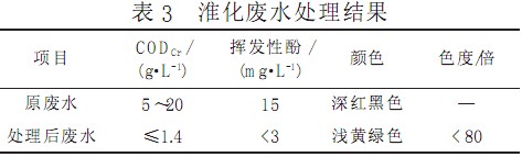 從表3看出,CODCr由5~20g/L(平均7.5g/L)降低至<1.4g/L,而且色度得到了很大的降低,非常利于生化處理達到排放標準。通過新型ClO2制備成套裝置在淮化的工業(yè)化應(yīng)用,說明對該種較難處理的工業(yè)廢水,采用復(fù)合ClO2還是比較理想的,可以說,也是目前治理該種廢水的有效方法之一〔3〕。