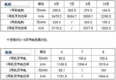 電廠運(yùn)行記錄(6~8月為原運(yùn)行方式,10月為手動(dòng)節(jié)電模式)