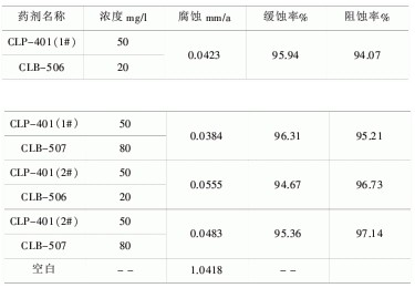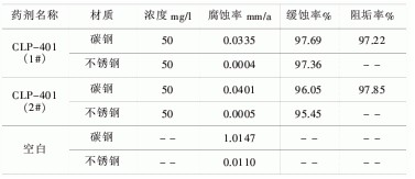 從CLP-401(1#)、CLP-401(2#)兩種藥劑試驗可以看出,投加量 為50mg/L時,緩蝕效果達到了化工行業(yè)標準;阻垢率均超過90%,達 到了化工行業(yè)標準。