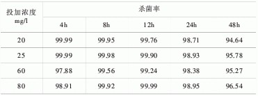 3.6.3殺菌劑投加濃度:CLB-506投加濃度為20mg/l、25mg/l; CLB-507投加濃度為60mg/l、80mg/l。