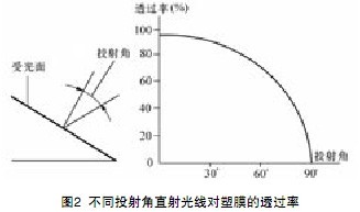 不同投射角射光對塑膜的透過率如圖2所示。