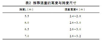 (2)日光溫室型污泥堆肥發(fā)酵倉的高度與跨度