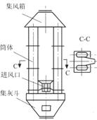 該除塵器的除塵原理是:經(jīng)外部硅整流變壓器,將380V交流電轉(zhuǎn)變成100kV的直流電,輸入除塵器筒體內(nèi)中心的電暈極,與除塵器的殼體形成正負電場,通過電暈線“芒刺”放電,筒體內(nèi)氣體電離產(chǎn)生大量的正負離子,使電場區(qū)域的粉塵獲得相同的電荷。在電場力作用下,帶電荷的粉塵趨向于與其極性相反的電極上,依靠自重和振打,向下落入集灰斗內(nèi),達到除塵的目的。