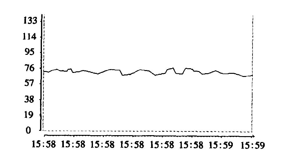現(xiàn)場整定是通過在控制面板上增加3個(gè)參數(shù)調(diào)節(jié)數(shù)字按鈕(BCD 碼) ,利用PLC的I/O 口對BCD碼進(jìn)行譯碼,轉(zhuǎn)換為相應(yīng)的比例、積分、微分參數(shù)。在實(shí)際使用中, PLC程序還根據(jù)前一次誤差e ( k)的大小和正負(fù), △e ( k)的大小和正負(fù), 對比例、積分參數(shù)進(jìn)行自適應(yīng)校正[ 3 ] , 以達(dá)到最佳的控制效果。圖4為進(jìn)口溫度曲線。從圖中可以看出采用自適應(yīng)P ID控制能夠很好的使進(jìn)入布袋的煙氣溫度控制在限定值之內(nèi),達(dá)到了較好的控制效果。