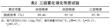 (2)采用多級多噴頭工藝技術(shù)。優(yōu)選噴霧角度,提高噴淋覆蓋率(達到200%以上),從而提高了脫硫效率;