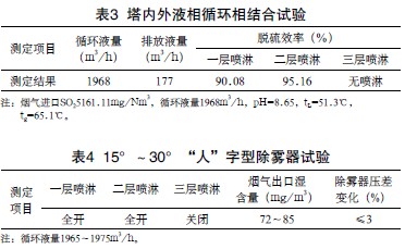 試驗?zāi)康模汗に嚰敖Y(jié)構(gòu)改進后脫硫效率、脫硫劑循環(huán)利用率和出口煙氣濕含量的變化情況。