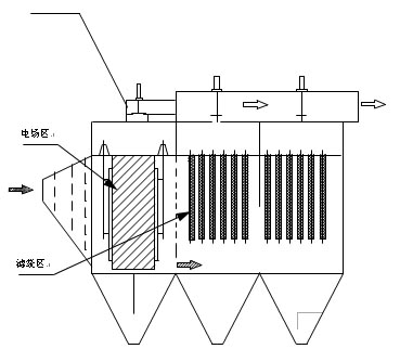TGDB型除塵器更強調(diào)電除塵區(qū)、濾袋區(qū)和兩者過渡區(qū)整體氣流分布的技術(shù)綜合應(yīng)用。