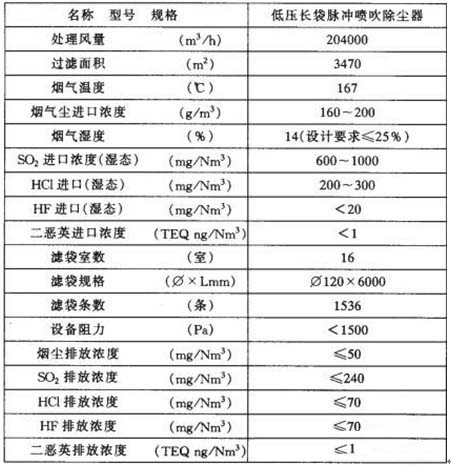 需要指出的是在本系統(tǒng)中,布袋除塵器不僅僅作為一個專用除塵設(shè)備,而且吸附在濾袋上的粉餅層還可與煙氣中的HCl、SO2進(jìn)一步發(fā)生反應(yīng),從而提高有害氣體的去除率,減少石灰的消耗量。