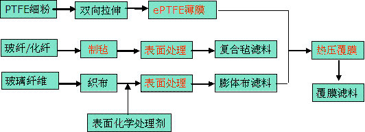 圖1 玻璃纖維覆膜濾料的生產(chǎn)工藝流程圖