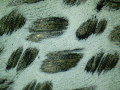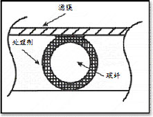 表面處理技術(shù)的核心是處理劑配方技術(shù)。是以聚四氟乙烯為主,再引入其他組份形成配合料,對玻璃纖維浸漬,在其表面成膜,達(dá)到保護(hù)纖維的作用。先在玻纖的表面通過化學(xué)處理形成了一層富含聚四氟乙烯的表面層,再與聚四氟乙烯濾膜通過高溫高壓融合成一體,形成覆膜濾料,詳見圖3,黑色部份就是膜和布的交織點通過覆膜融成了一體,而其白色部份就是起過濾作用的膜。