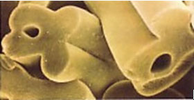 纖維配方技術(shù)主要是指耐高溫化學(xué)纖維品種選擇和配比多少。我們采用的是P84纖維,詳見圖6,這種纖維具有異型截面,比表面積大,過濾性能好,同時耐溫達(dá)260度,與玻纖耐溫匹配性好。