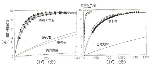 3.2 微納米氣泡技術與傳統(tǒng)曝氣設備(穿孔管,曝氣頭)的充氧效果比較