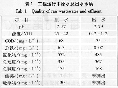 工程運(yùn)行結(jié)果表明,菱形翼片隔板絮凝反應(yīng)設(shè)備運(yùn)行穩(wěn)定,藥劑利用效率較高,可使沉淀池出水濁度降至1 NTU左右,且對COD具有良好的去除效果,可極大降低后續(xù)處理負(fù)荷。