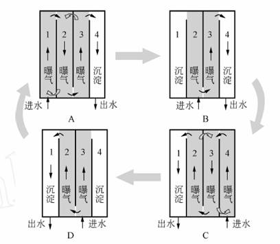 傳統(tǒng)活性污泥工藝是最早的城市污水處理技術(shù),穩(wěn)定性高、操作簡便的特點(diǎn)使之成為應(yīng)用最為廣泛的一種好氧生化處理技術(shù)。氧化溝工藝(Oxidation Ditch) 是一種低負(fù)荷、延時(shí)曝氣改進(jìn)的活性污泥工藝系統(tǒng),但延時(shí)曝氣方式增大了運(yùn)行能耗。丹麥Kruge 公司開發(fā)的三溝氧化溝工藝,省去二沉池可節(jié)省投資,但其存在污泥分布不均勻,容積及設(shè)備利用率低的缺點(diǎn)。SBR 工藝以其操作靈活多變、占地面積小、省略沉淀池等特點(diǎn),在我國成為發(fā)展迅速的污水處理工藝之一。