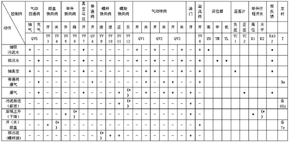 (9) 控制氣閥的開關(guān)組合,完成抽吸污泥水、排壓污水和抽真空、爆氣的工作。