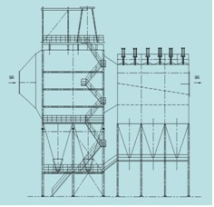 兩級(jí)除塵:電除塵區(qū)作為預(yù)除塵,布袋除塵區(qū)作為二級(jí)除塵。