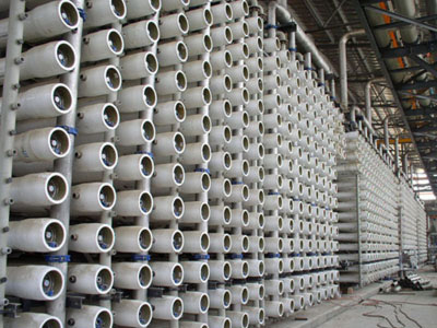 海水含鹽量為23000~34000mg/L,經(jīng)RO處理后產(chǎn)水含鹽量為211mg/L。