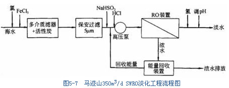 1998年建成的浙江馬跡山350m3/d SWRO淡化工程其工藝流程如圖5-7所示。