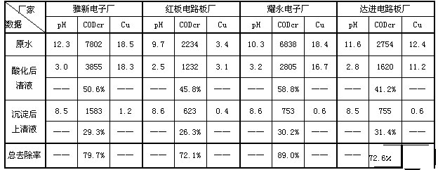 上述的四種油墨廢水處理方法,各有優(yōu)劣,考慮到工程實際的可行性,采用酸化-凝聚法處理PCB油墨廢水是較為合適的方法, 在實驗室小試條件要求也不太高,實驗方便,反應(yīng)時間要求不長,可馬上化驗分析實驗結(jié)果。我們?nèi)讉不同廠家的油墨廢水作實驗如下: