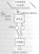 垃圾處理場共布有3個監(jiān)測采樣點,一是垃圾壩總排放口;二是地下水環(huán)境監(jiān)測井,井深10m,井口直徑10cm;三是滲濾液處理系統(tǒng)的總排放口,見圖1。