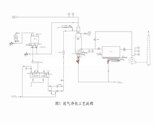 采用循環(huán)風(fēng)機將已凈化的尾氣回通過環(huán)壁噴射裝置噴入反應(yīng)塔,使其在塔壁表面形成一層空氣幕保護塔身,以防濕壁。