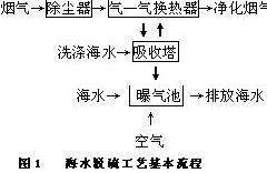 (l)不添加任何化學(xué)物質(zhì),用純海水作為吸收液的工藝,以挪威ABB公司開發(fā)的Flakt-Hydro工藝為代表。這種工藝已得到較多的工業(yè)化應(yīng)用。