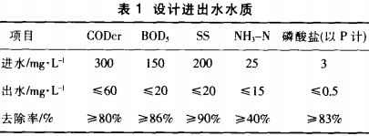 該污水廠的進(jìn)水水質(zhì)確定參考洋里污水廠設(shè)計水質(zhì),并根據(jù)現(xiàn)水質(zhì)情況,保留一定的余地;尾水排放執(zhí)行GB8978—1996國家一級排放標(biāo)準(zhǔn)確定。進(jìn)出水水質(zhì)指標(biāo)見表 1: