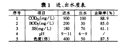 混合廢水的設(shè)計進水水質(zhì)和出水如表1所示