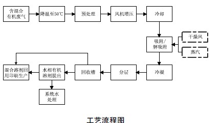 活性碳纖維有機廢氣回收技術工藝流程見下圖: