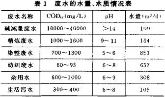 某外資公司為生產(chǎn)仿真絲滌綸布的紡織印染企業(yè),年產(chǎn)仿真絲滌綸布1200萬(wàn)碼。其生產(chǎn)廢水有以下幾股:紡織廢水、堿減量廢水、精煉廢水、染整廢水、雜用水。還有主要來(lái)自宿舍樓、食堂、浴室、辦公樓的生活污水。各股廢水水質(zhì)水量情況見(jiàn)表1。