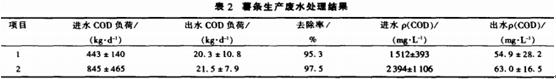 挪威一薯條廠廢水處理采用MBBR法進行好氧處理。小部分廢水先經(jīng)厭氧預處理,大部分廢水沒有預處理。MBBR由3個串聯(lián)的反應器組成。生物處理后的廢水在進入最終沉淀池之前進行加藥混凝。載體的比表面積為450m2/m3,,填充率為50%。測定結(jié)果見表2。